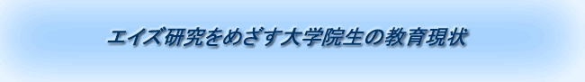 | 現在熊本大学医学教育部には、エイズの研究者を目指す博士課程学生が26名、修士課程学生が15名在学している。これらの学生の指導は、主に指導教官を中心とした個別指導の体制がとられている。 この中には、日本学術振興会の特別研究員に採用されているものが既に2名おり、また海外の学会で表彰されたもの(13th Conference on Retroviruses and Opportunistic Infections 2006)Young Investigator Award:現博士課程2年生、AIDS Vaccine 2004 Conference: Travel Grant :現博士課程3年生) などもおり、その教育効果が一部では出ていると考えられる。しかしながら各研究室の教育体制の差は大きく、組織だった体系的教育の必要性が出てきた。 |